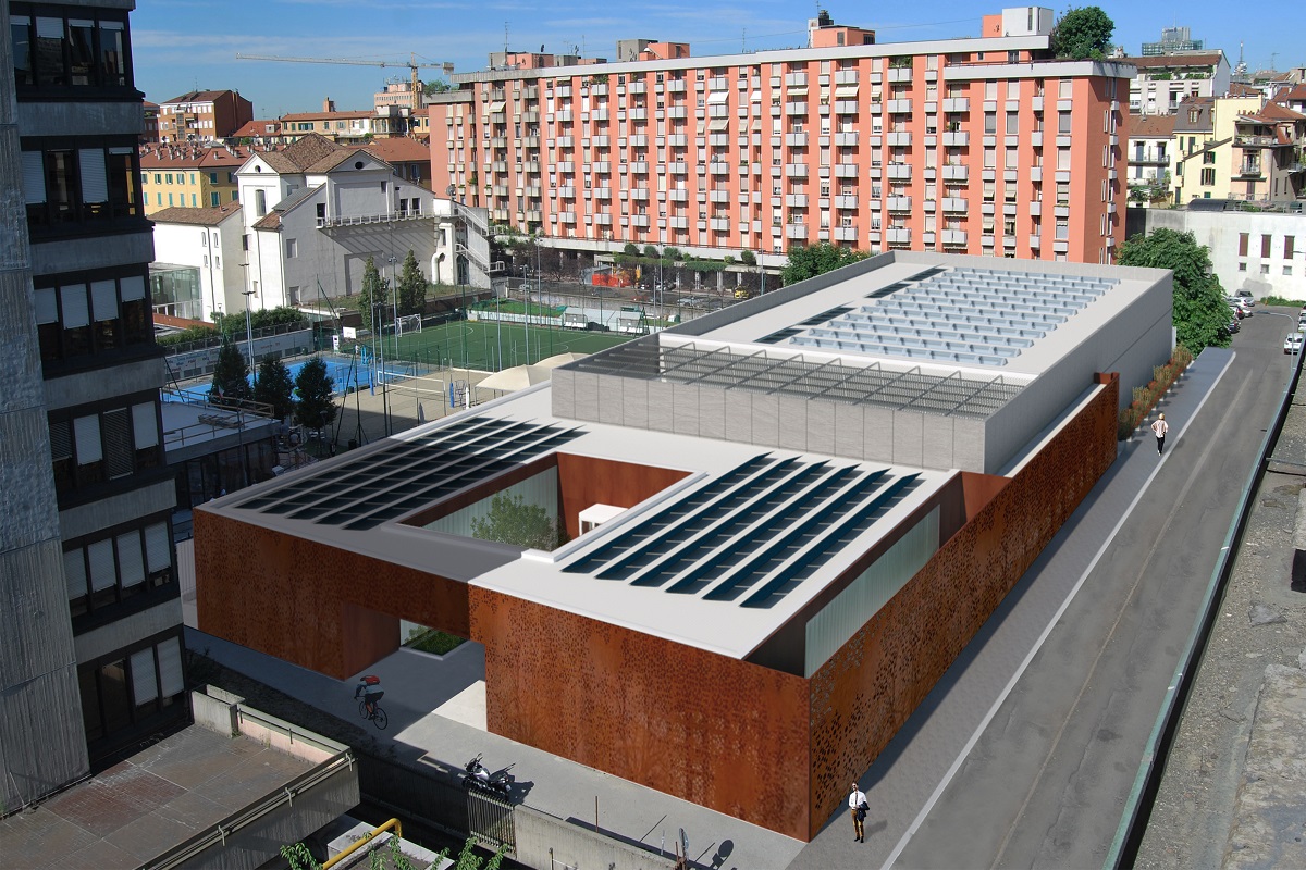 La nuova piscina di via Fatebenesorelle sarà localizzata all’interno di un nuovo edificio monoplanare, adiacente ad altre strutture sportive, all’interno del quale troverà sede (ai sensi della L. 717/1949) l’opera d’arte rappresentata dall’installazione “Il Nuotatore va troppo spesso ad Heidelberg” del 1984 di Studio Azzurro.