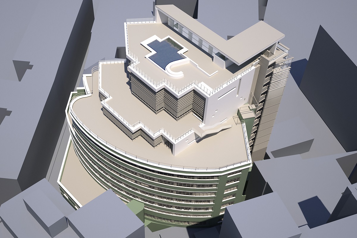 Sulla base dei criteri definiti con l’apposizione del vincolo monumentale (Decreto Ministeriale in data 17.7.2007), l’intervento sull’edificio di via Bagutta prevede la ridistribuzione della s.l.p. esistente attraverso un sopralzo di tre livelli entro un’altezza massima di 40 metri, secondo una distribuzione planivolumetrica e colori omogenei agli edifici coevi adiacenti.
