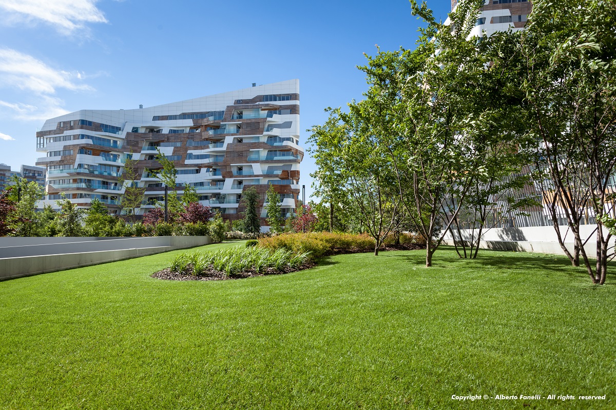 - sostenibilità ambientale: dal punto di vista energetico tutti gli edifici residenziali sono in Classe A e prevedono l’utilizzo di fonti di energia rinnovabile mentre sia l’asilo nido che le tre torri per uffici sono stati progettati per garantire i più elevati standard di efficienza ed il contenimento dei costi energetici (certificazione LEED™). Analogamente, anche i nuovi lotti terziari situati sul quadrante nord-est del quartiere (c.d. progetto BIG) si distingueranno in tal senso grazie ad una copertura rivestita di pannelli fotovoltaici.
