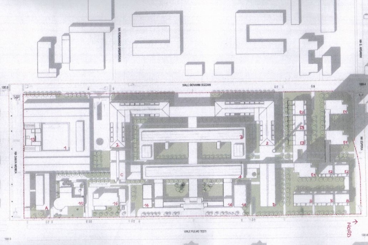 - realizzazione di nuovi edifici nella porzione nord o ristrutturazione di edifici esistenti (lungo viale Suzzani e a sud) per funzioni urbane private (prevalentemente residenza e commercio);
