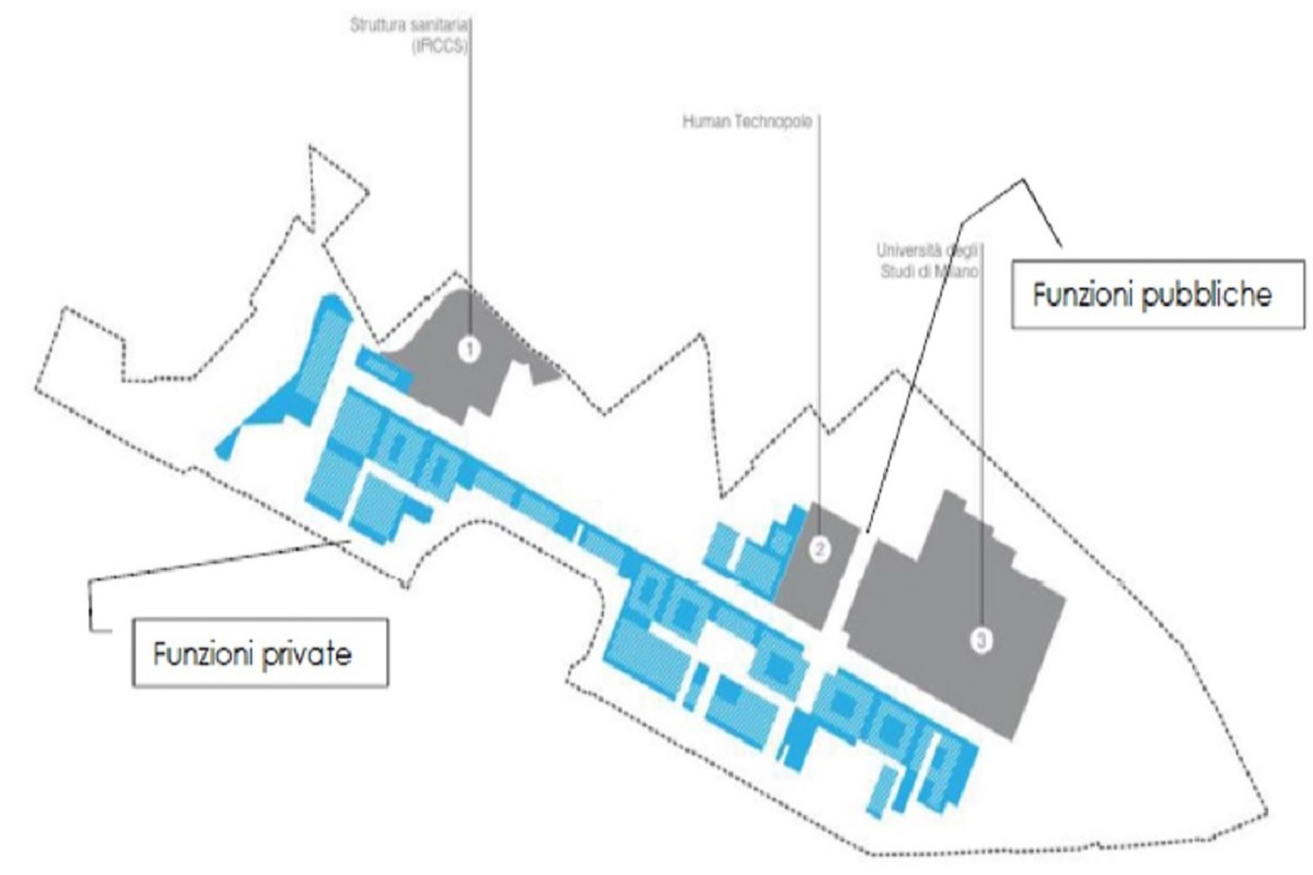 La rigenerazione si fonda sulla integrazione tra preminenti funzioni pubbliche (Nuovo polo ospedaliero IRCCS Galeazzi, Human Technopole e Campus Università Statale) e lo sviluppo privato sulla base della griglia esistente dei percorsi (soprattutto Cardo e Decumano) nonché su alcune opere (es. Palazzo Italia) ed infrastrutture realizzate per la manifestazione.