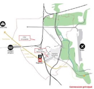 - la realizzazione di un sistema di trasporto pubblico su rotaie, estensione di quello esistente, che collega la stazione ferroviaria di Rogoredo con la nuova fermata Forlanini della linea 4, in grado di penetrare nell’area e servire in modo efficace le diverse aree funzionali;