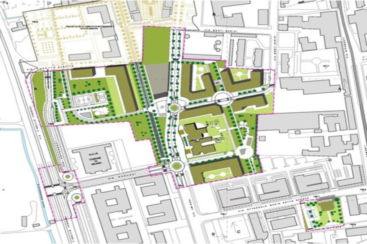 - la realizzazione di un sistema di servizi lungo l’asse centrale costituito da un plesso scolastico (con annessa palestra aperta al quartiere) e da altro edificio con destinazione biblioteca/centro polifunzionale;