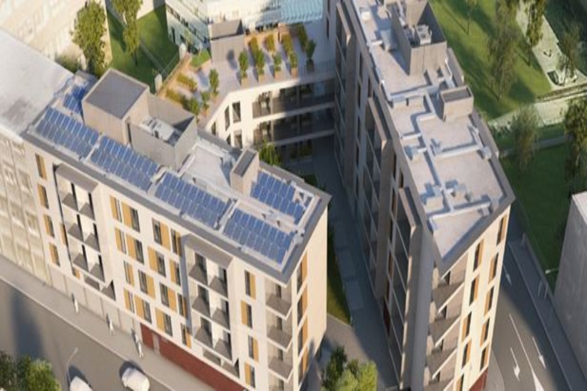 L’intervento è composto da tre edifici di tre e cinque piani fuori terra, collocati in modo da comporre al centro una corte privata attrezzata a giardino.