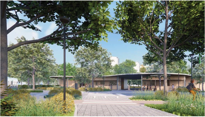 - primo tratto di strada interna di collegamento tra via Giuffrè e via Villani: sistemazione della strada con ridisegno del layout dei parcheggi pubblici a raso, riconfigurazione del marciapiede est e nuove piantumazioni;